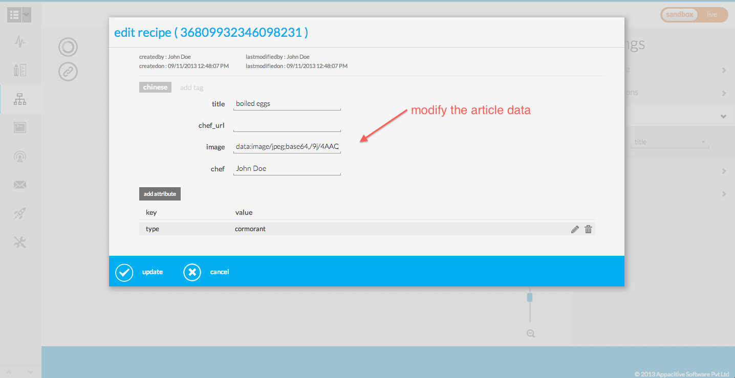 Once you are done entering information, click the update button to save the modify article.To cancel the changes, click on the cancel button.